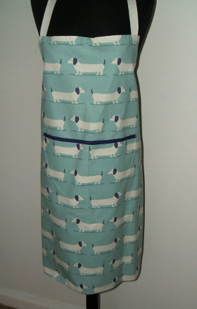 adult blue sausage dog apron