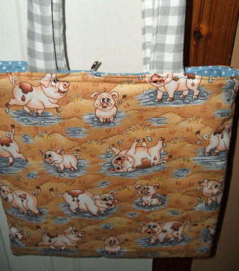 Cotton fabric bag, handles and lining with cotton/ bamboo wadding.
