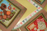 9 Cotton fabric squares appliqued onto felt fabric squares.
