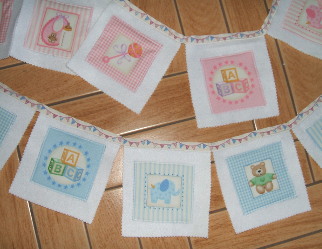 9 Cotton fabric squares appliqued onto felt.