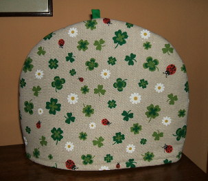 Linin look cotton fabric with shamrock print. Heat proof wadding and cotton fabric lining.